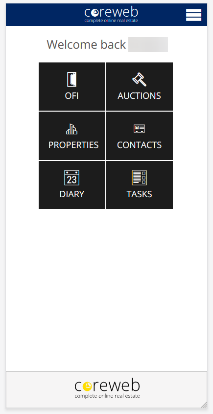 Common Tasks Home ScreenHow to navigate OFI Button Breakdown Auctions Button Breakdown Properties Button Breakdown Contacts Button Breakdown Diary Button Breakdown Tasks Button Breakdown OFI (Open For Inspection)Creating an OFI Adding attendees to a OFI Using the Launch Open tool Sending an Email or SMS to the attendees Attaching a Web Book, Contract or Building Inspection AuctionsCreating an Auction Adding a bidder Adding bids View bid information after the auction What happens after the auction? PropertiesAdding activity to a Property ContactsAdding a Contact Editing a Contact Adding activity to a Contact DiaryHow do I use my Diary? Adding a Diary entry Change what my Diary displays TasksAdding a new task Marking a Task as complete Filtering Tasks in your list Other How to access Core Mobile Add a Core Mobile icon on your device’s Home Screen