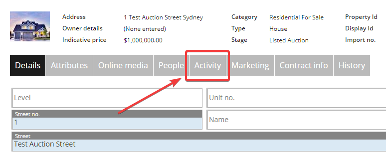 • Click on the Activity tab to see activities associated with the property