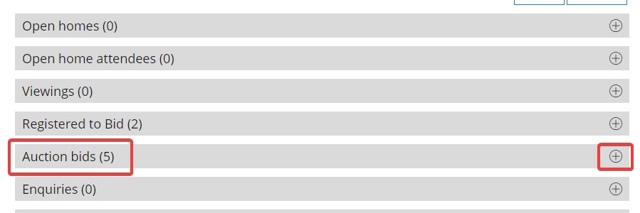 • Find the section “Auction Bids” and click the plus “+” symbol to expand it