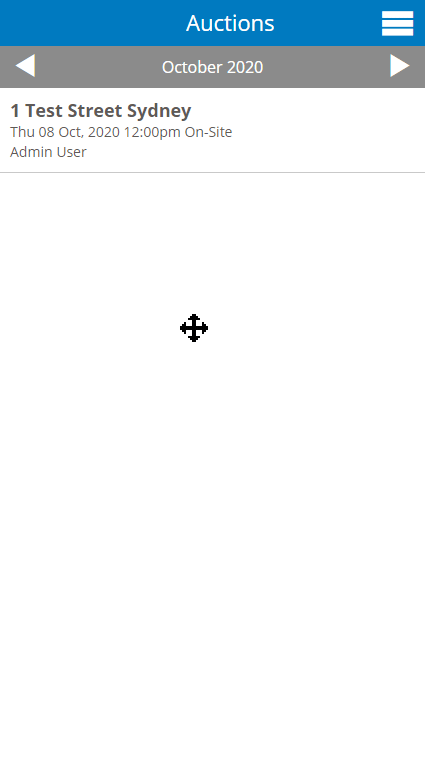 On the Auction screen you will be presented with the current month. If there are no auctions set the tool will advise, however if you do have calendared auction they will appear here. Auctions must be added through the Core web interface as they relate to the property stages.
