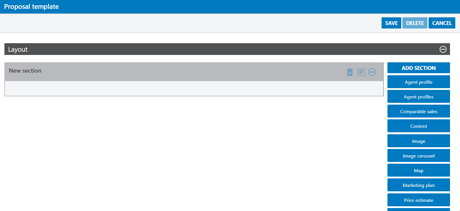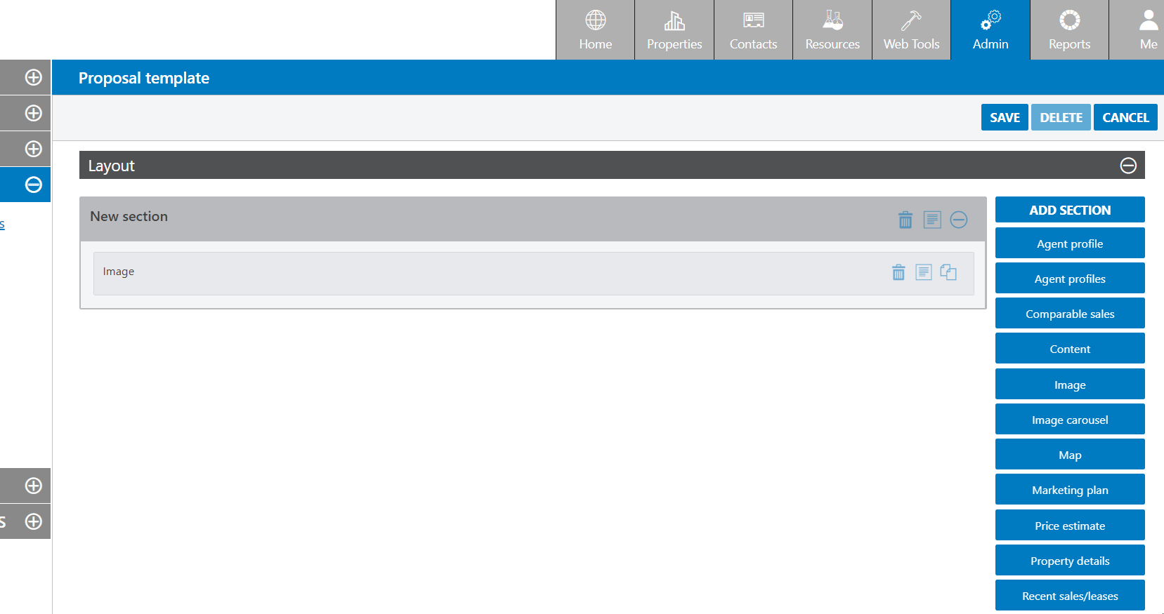 This is where you design your master templates and will be the basis for your content. Once editing the templates you can create a wireframe with “sections” which can be considered buckets for information, and “components” which all have a different function and get placed inside the section. The beauty of the Core system is that our components can all read from information that has been entered into the property. This includes things like Vendor name, property address, your team, your profile, pricing, recent sales, your marketing plan, testimonials… the list goes on and will continue to be updated. Once you have perfected your proposal template, you move on to creating the proposal that is unique to your property.