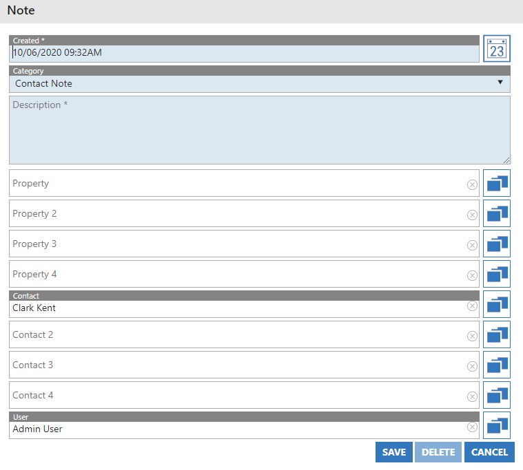 - You can relate the note to a Property if needed. If you wish to add the same note to several, you can select up to 4.