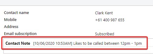 To provide an ability to leave notes on a Contact. These are shown under the main Contact’s details to remind others in your team or Yourself of something.