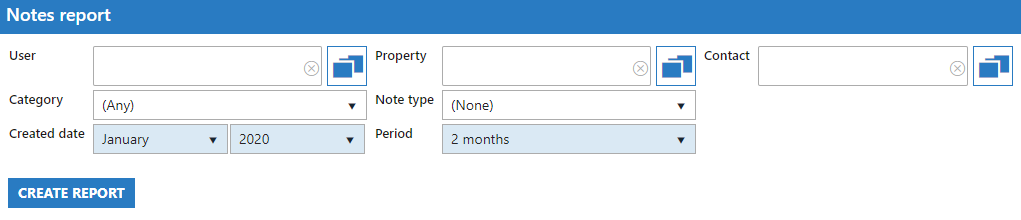 - Select the appropriate criteria to narrow down the results of your report as required. The Created Date and Period will usually be the modified criteria. Once ready, press Create Report.
