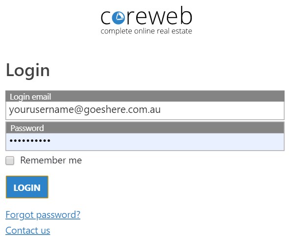 Visiting admin.coreweb.com.au will take you to the login screen. Enter your normal credentials and press “Login”