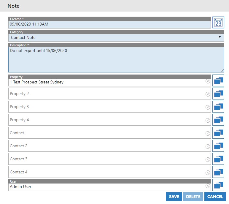 - The Property that the note will be added to has been automatically selected. If you wish to add the same note to several, you can select up to 4 if you wish.