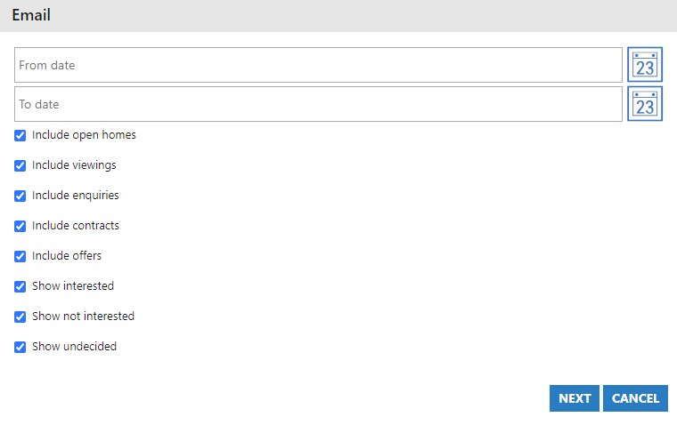 This feature allows you to communicate with Contacts that have had some kind of interest in the Property, recorded as an Activity.  It gives you the ability to drill down to not only a specific time period, but also the type of activity itself.