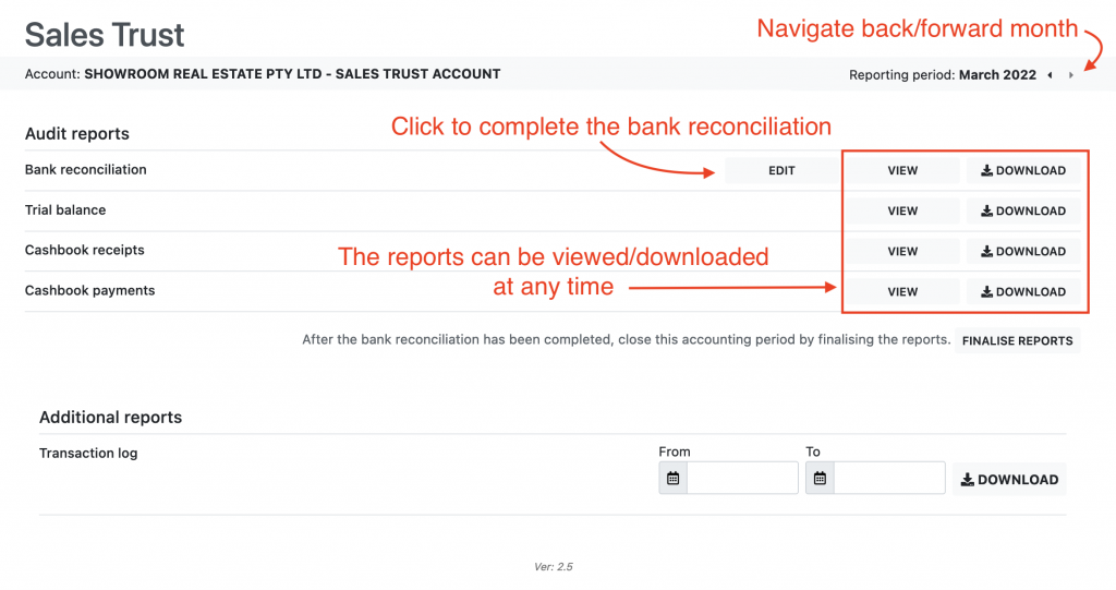 - Additionally you can also generate a log, or statement, for all transactions in the trust account.