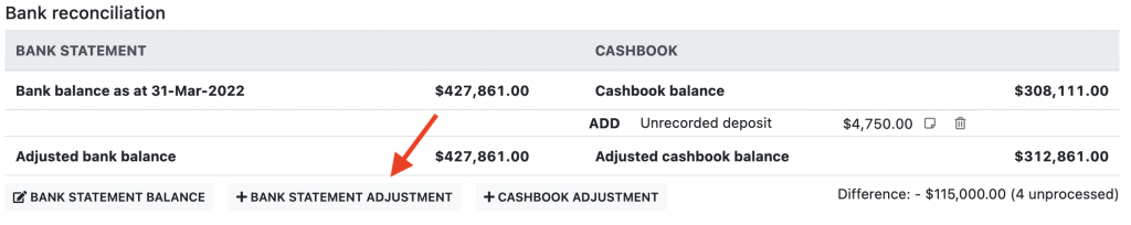 - Click the “Bank statement adjustment” button.