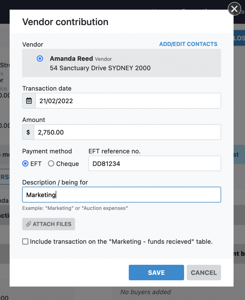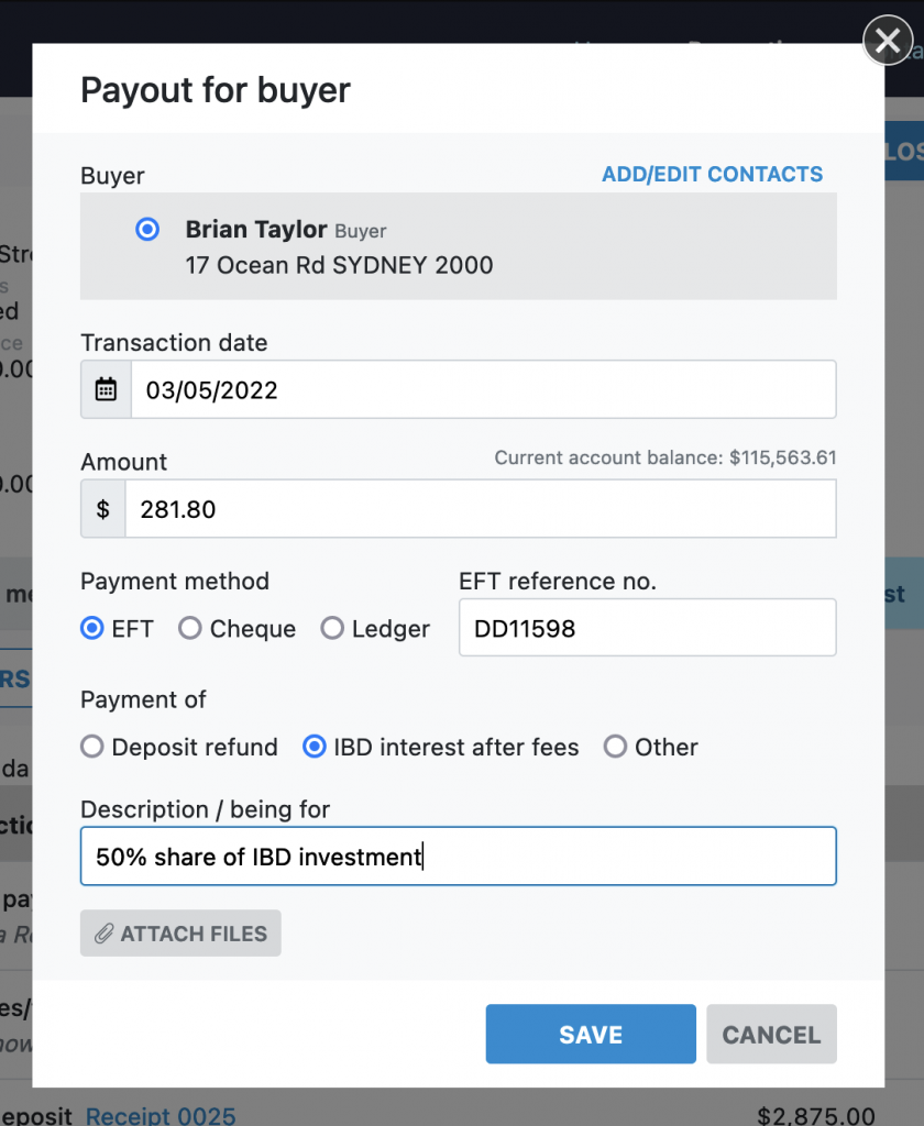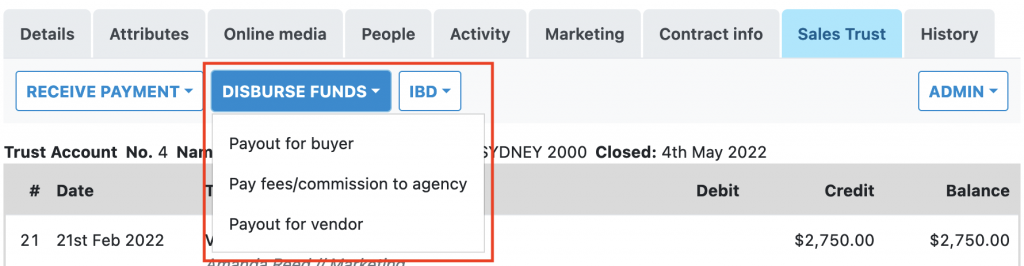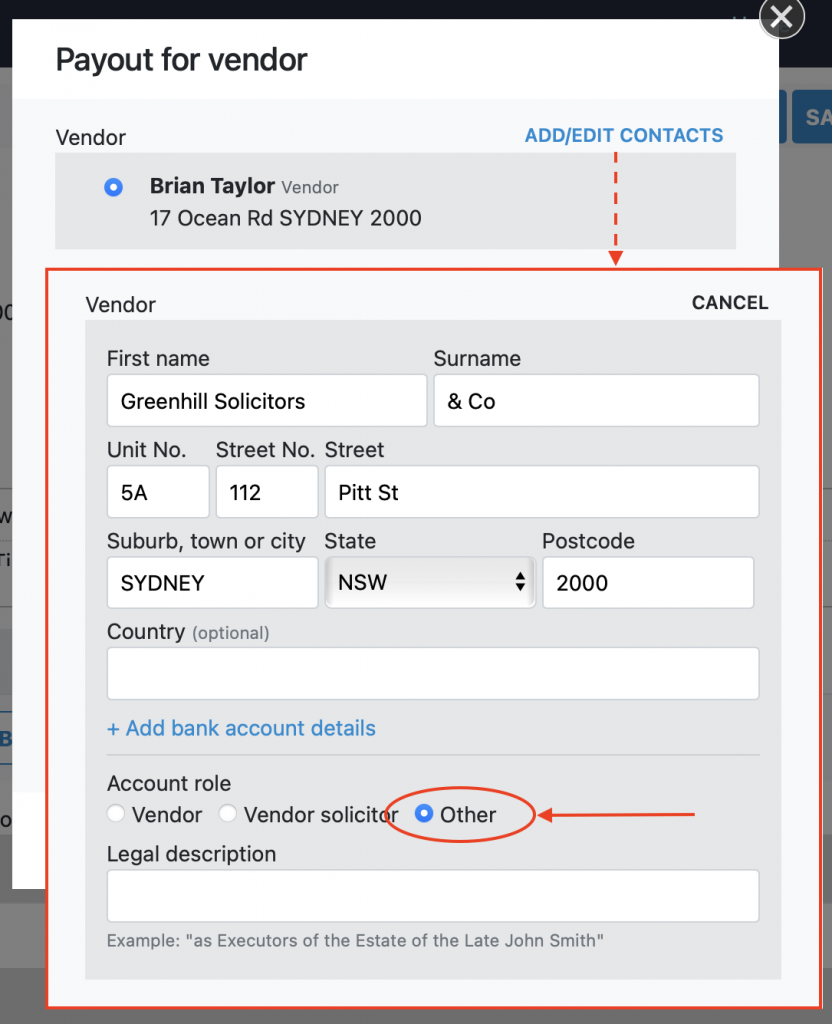 For example; if a vendor wishes to have their funds disbursed to their solicitors, add the solicitor as a contact when disbursing the funds and set the account type to other.