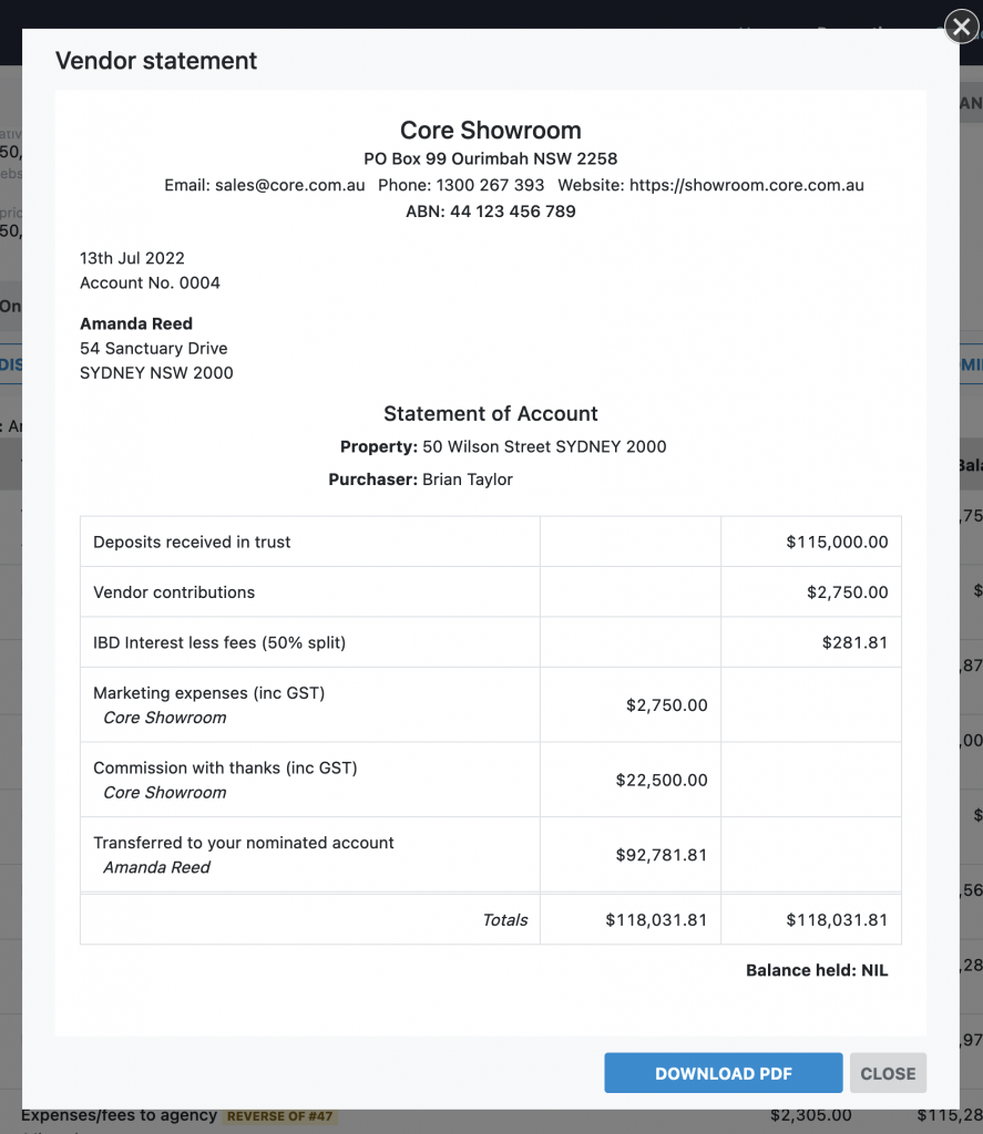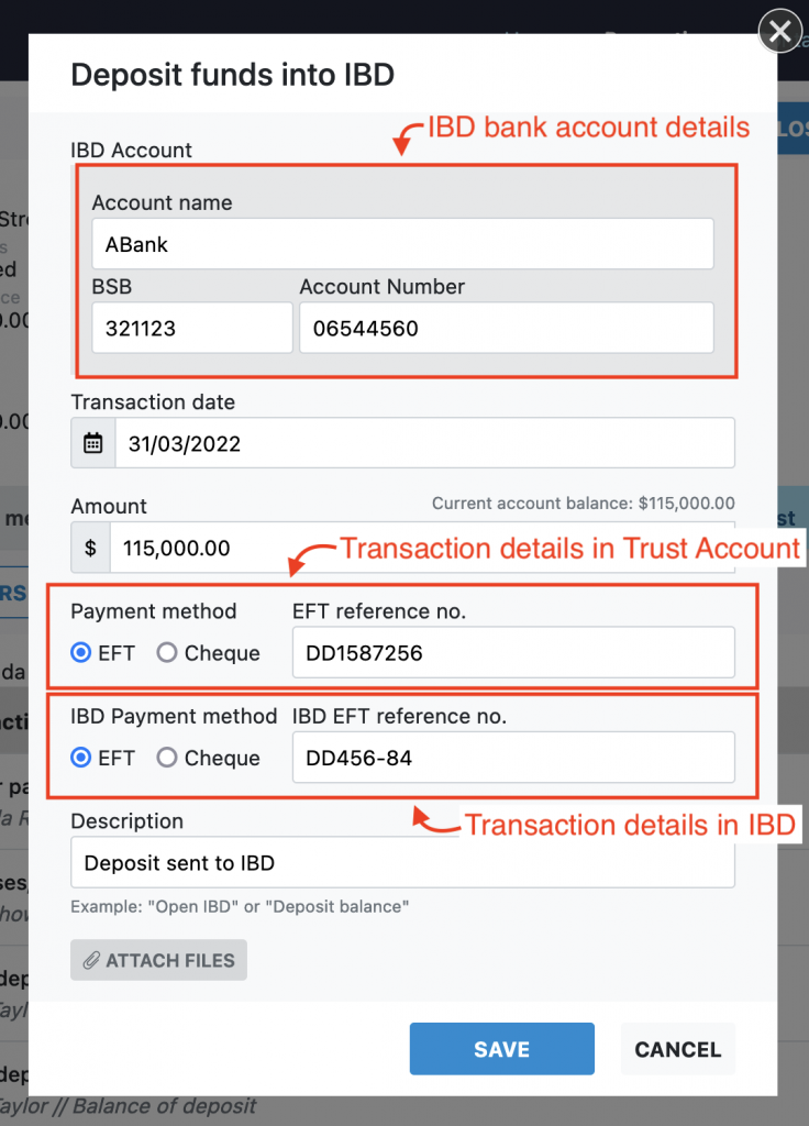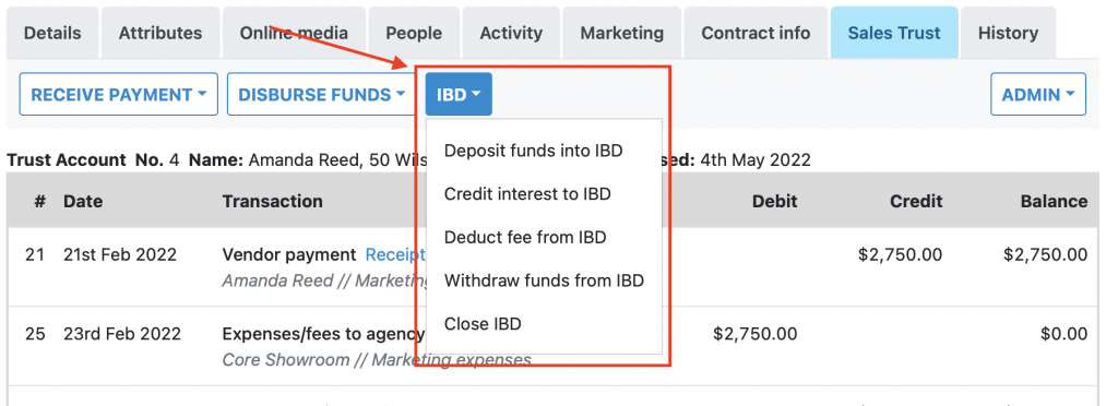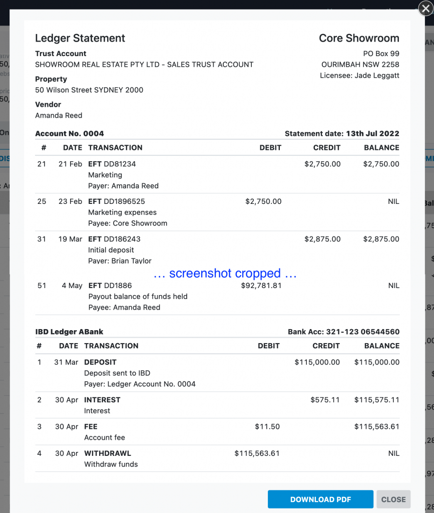 The funds will now show as withdrawn from the trust account and deposited to the IBD ledger.