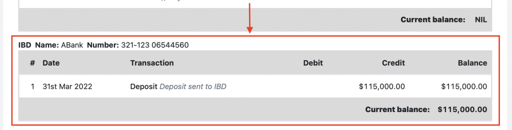 A new ledger will be opened for the IBD account. This account will be visible at the bottom of the trust accounting tab: