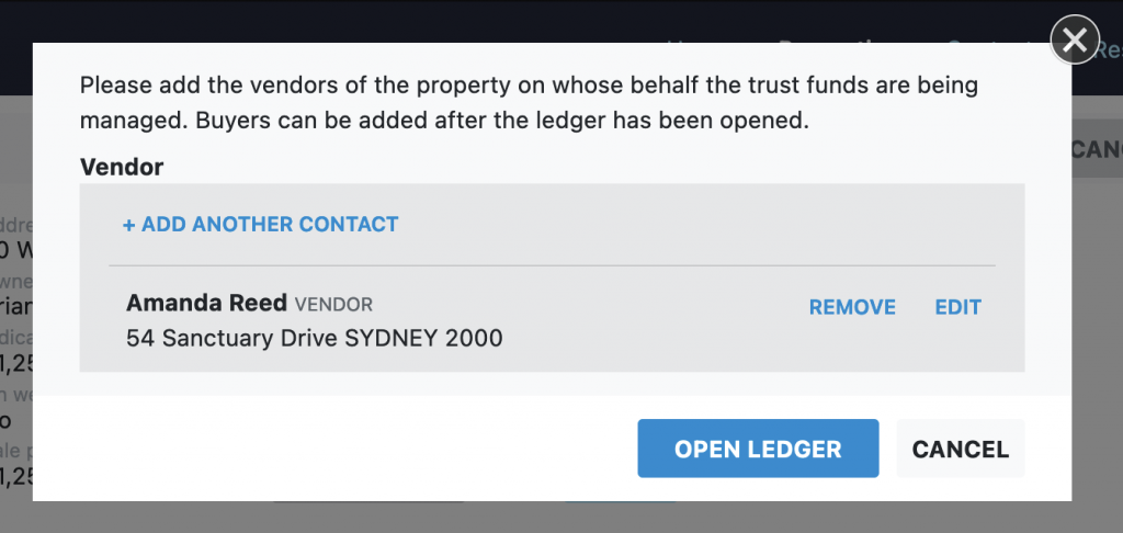 To record transactions in your trust account for a sale, you must first open a ledger for the property.
