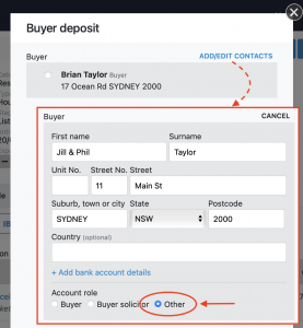 For example; if a partner or parent provides funds for the buyer of a listing, add them as a contact when receipting the funds and set the account type to other.